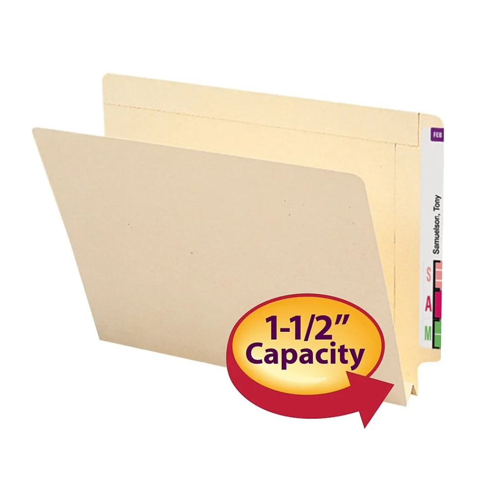 Sort documents into these end tab file folders designed to withstand longtime, repeated use. A W fold allows these folders to expand as their content grows from a single sheet to many sheets. With reinforced tabs, these Smead end tab file folders provide added durability.