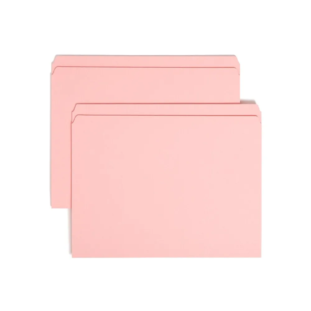Keep file cabinets organized with these Smead letter-size manila file folders. The reinforced tab design resists bending and tearing, while the center-position tabs align neatly so labels are easy to read. Sturdy 11-point stock makes these folders ideal for everyday use in your busy office. With their slightly rounded corners, these Smead legal-size pink file folders resist catching on the inside of file drawers.