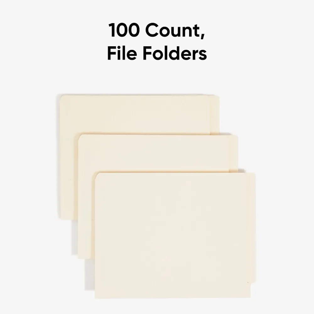 - Contains 100 manila straight-cut end tab file folders per box