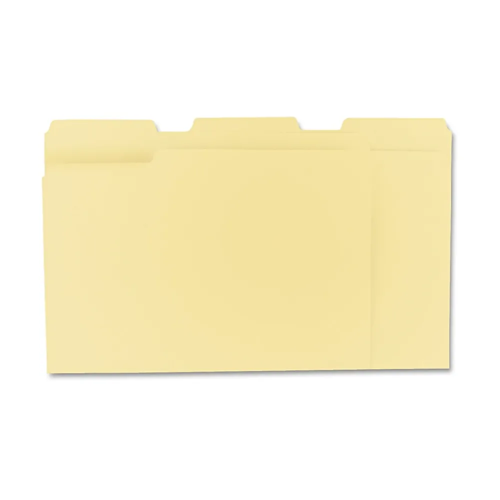 The top tabs are undercut to provide a generous indexing area for detailed labels and titles, and the classic folder construction resists snags and tearing in crowded filing drawers. The 11-point manila material of these Universal top-tab file folders is triple-scored to support large files and prevent sagging.