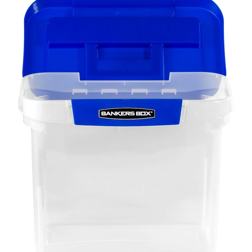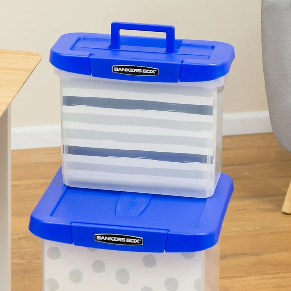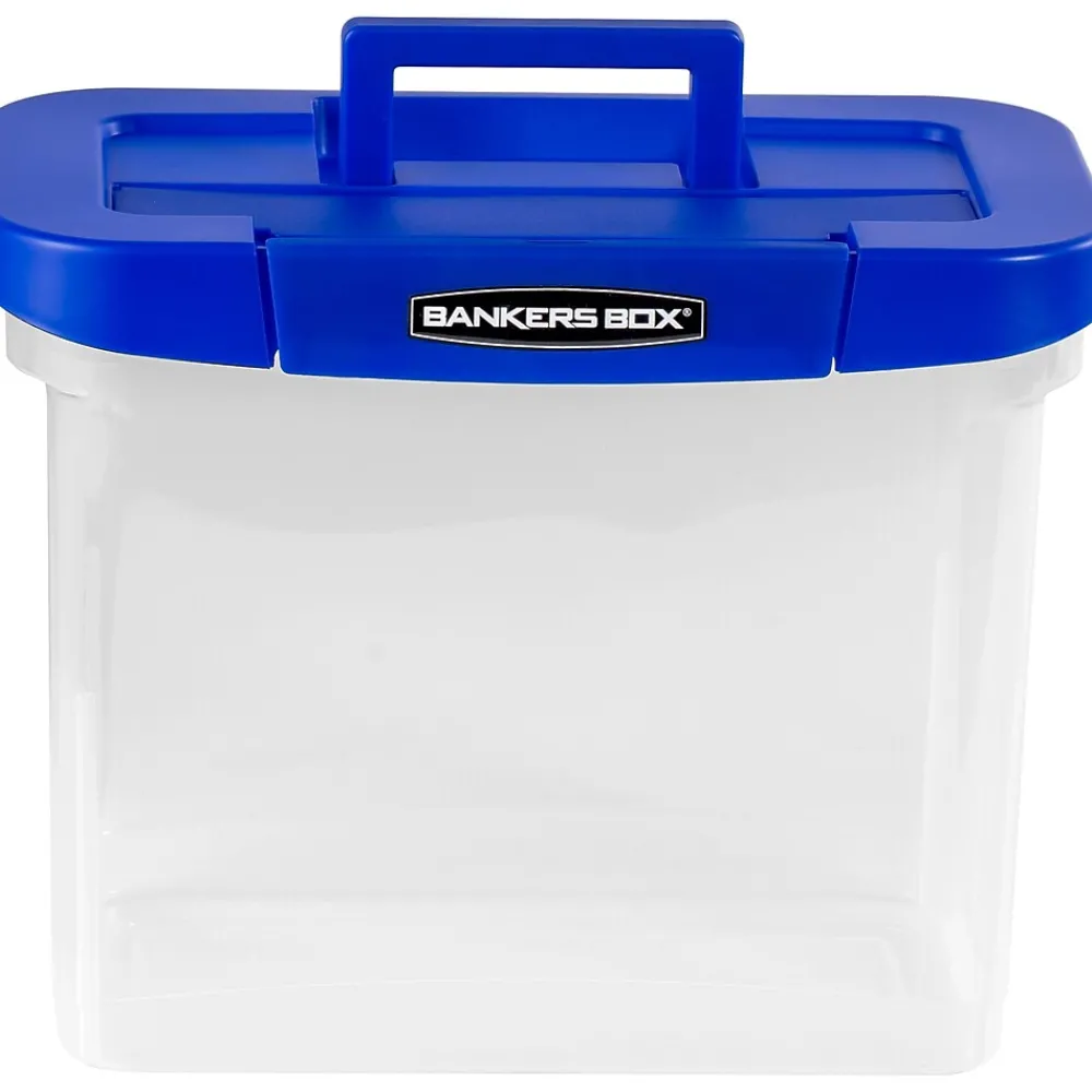File Storage|Bankers Box® Bankers Box Heavy-Duty Plastic Portable File Storage Box, Letter Size, Blue/Clear (0086301)