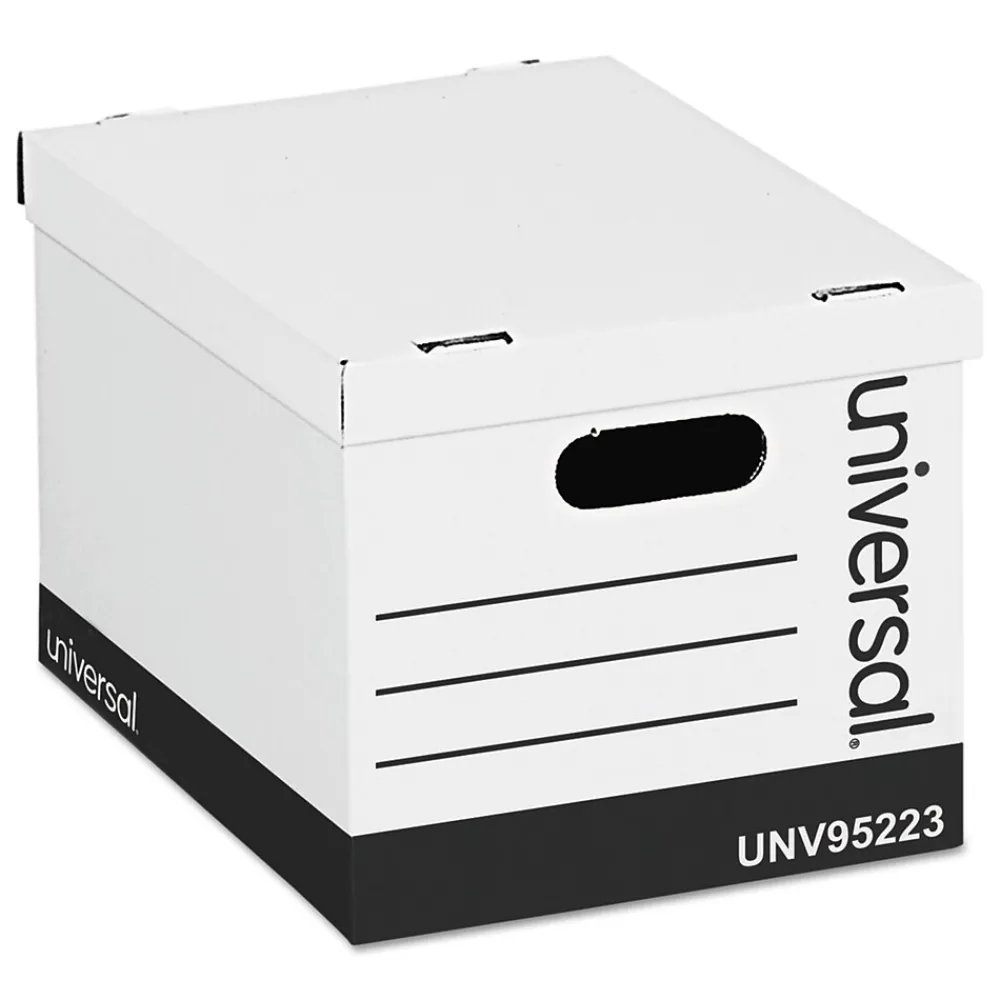 Double wall single wall construction. Deep lift-off lid design. Basic set up construction designed for moderate use on shelving. Color: White. File Size Format: Letter/Legal. Stacking Strength: 510 lbs. Inner Depth 15 in. Inner Height 10 in. Inner Width 12 in. Quantity: 12/carton. Size: 12″x 15″x 10″.