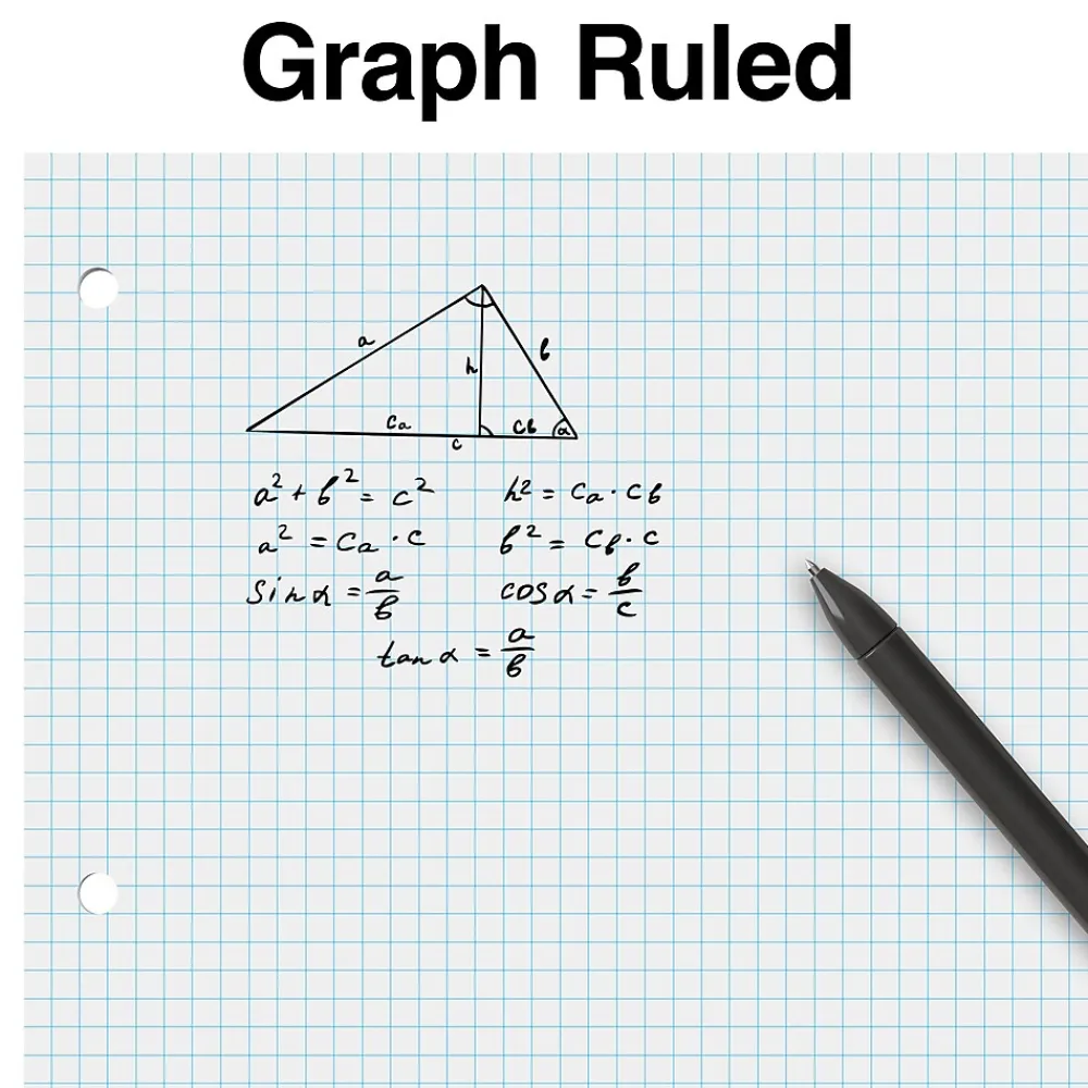 Draw with precise detail using this graph ruled filler paper. Each sheet is three-hole punched for convenient use with standard three-ring binders, while the light blue printed lines make whatever you draw stand out. This Staples Business Essentials 8 x 10.5-inch white graph ruled filler paper comes with 80 sheets in each pack, so there’s plenty of room to work.