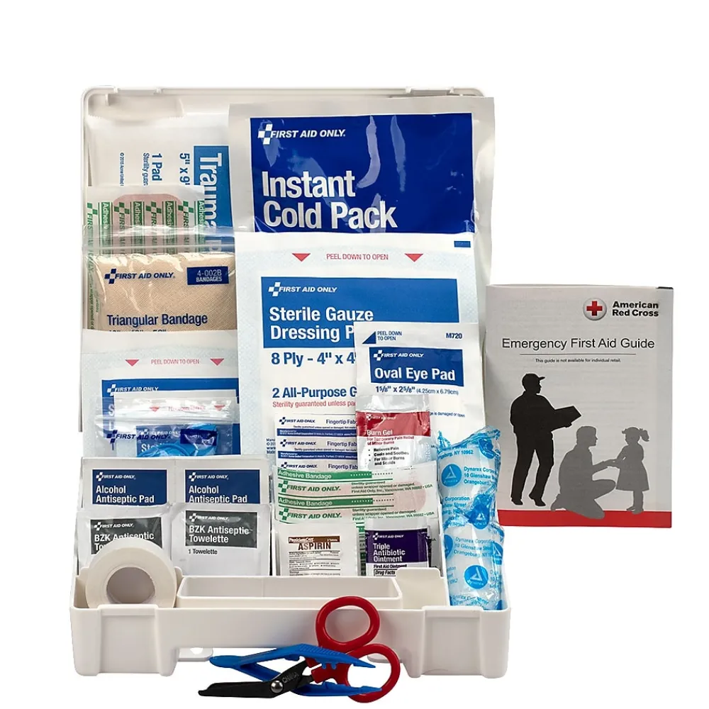 - Kit contains 62 essential first aid supplies