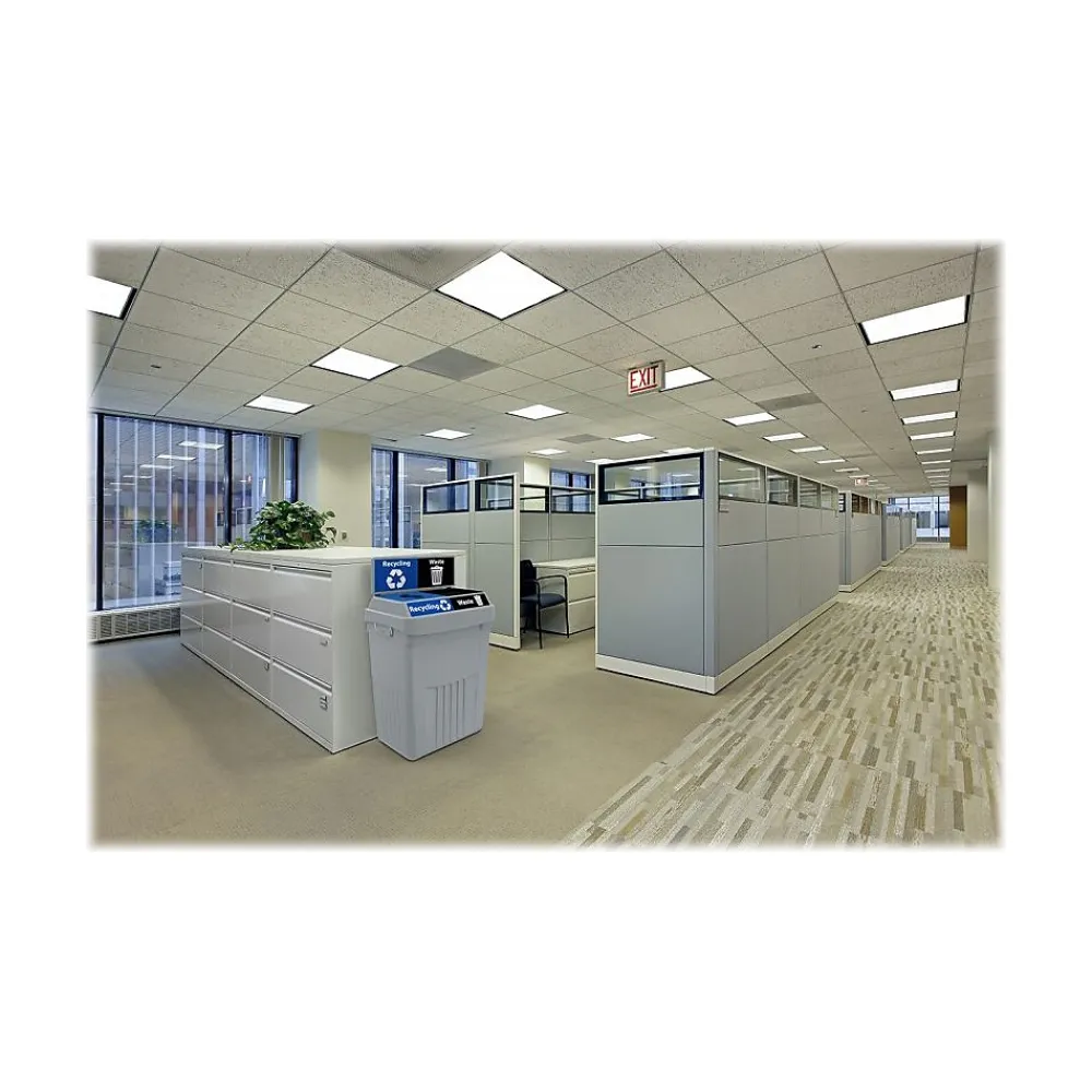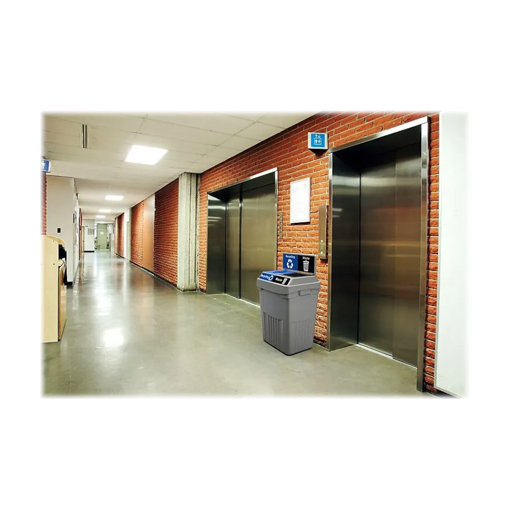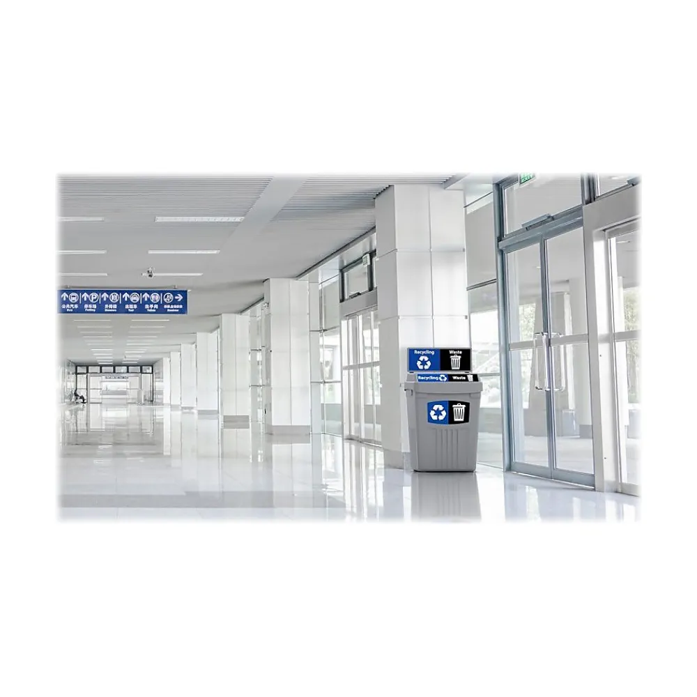 | Receptacle Shape Trash can or recycling bin features. For example: molded hand grips, wide rim, step on, touchless | Backboards with stream labels included |