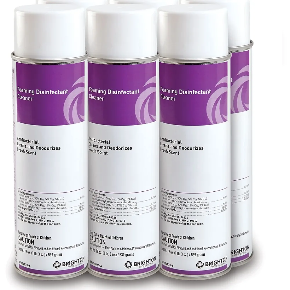 Brighton Professional™ Foaming Disinfectant Cleaner cleans, deodorizes and disinfects in one step.