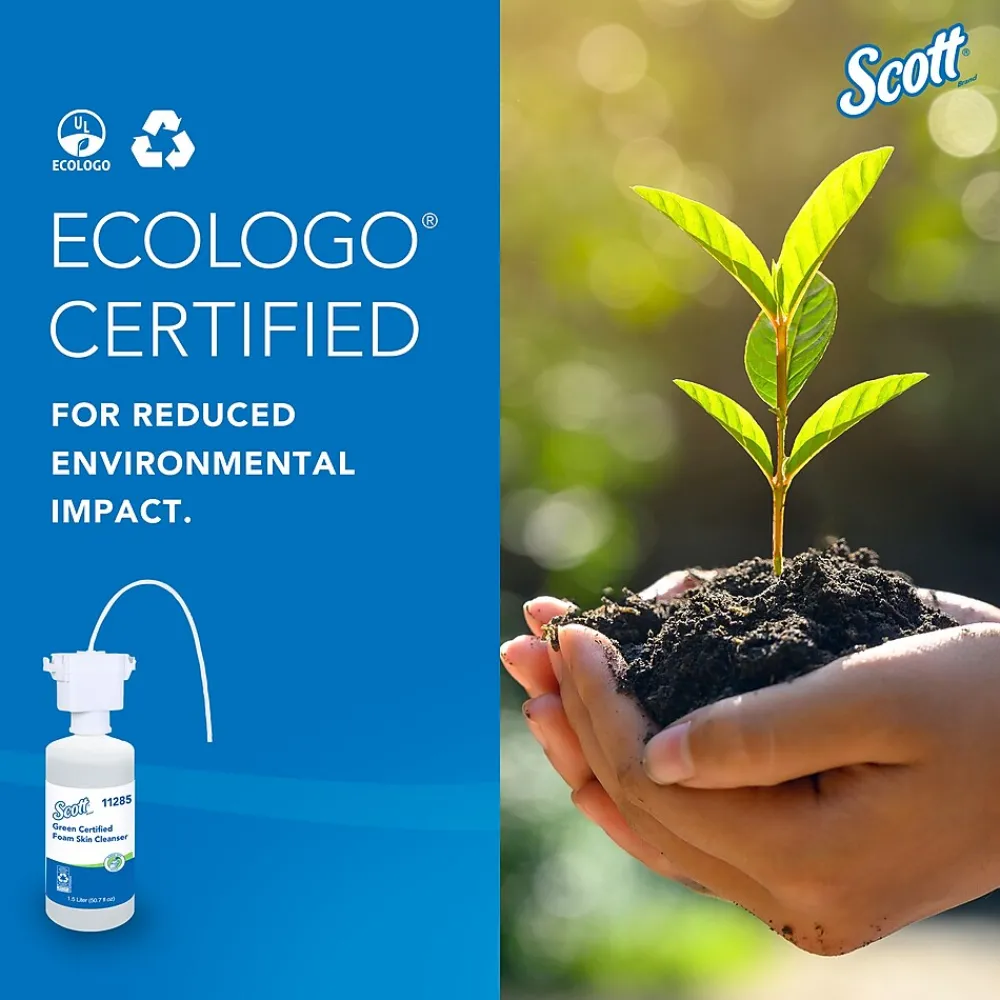 Scott® is one of the world’s most recognized restroom brands with over 150 years of experience keeping your staff and guests healthy. Show you care by providing Scott® Green Certified Skin Cleanser, which offers a reliable balance of efficiency, performance and value so that you’re helping to stop the spread of germs with a trusted hand soap solution. This Scott® brand foaming hand soap also helps you show your commitment to being environmentally conscious, since it is fragrance-free, dye-free, ECOLOGO certified, and comes in a recyclable bottle. Scott® hand soap keeps hands clean in schools, workplaces, stores, and more. Because the soap is NSF E-1 rated, it is also suitable for use in food processing and food service settings. When you’re charged with maintaining washrooms in busy environments, Scott® soap dispenser refills maximize your productivity, while ensuring staff and guests at your facility stay clean and healthy.