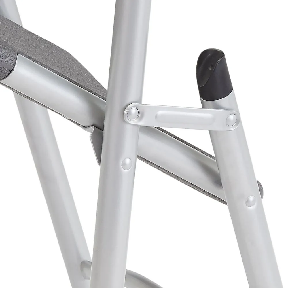 - Grey 19 gauge steel frame with steel underbrace supporting the blow-molded plastic seat and back