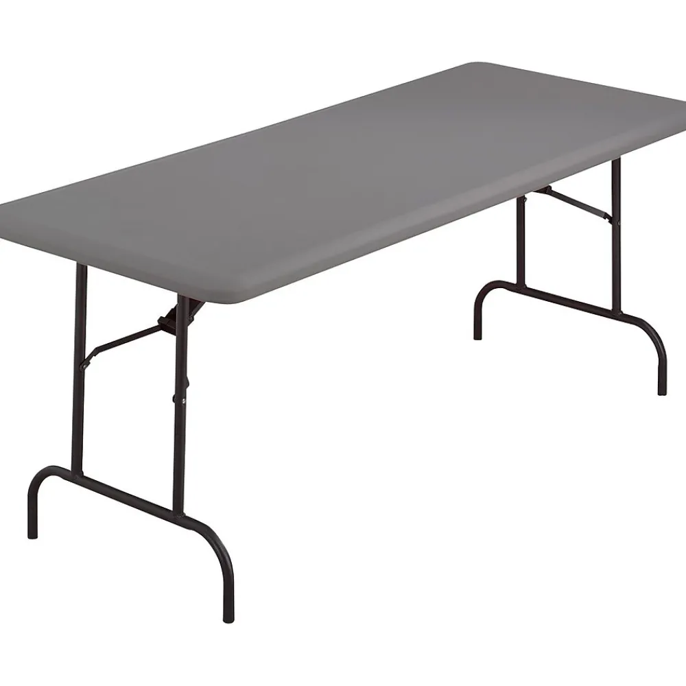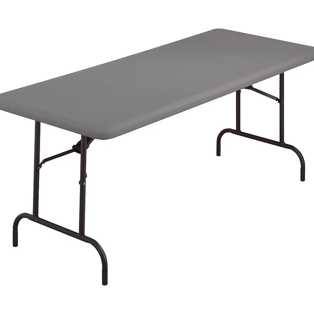 Iceberg 5′ Heavy-duty commercial resin folding banquet table in charcoal finish has 2″ thick blow molded high impact polyethylene scratch/stain resistant top. Table measures 29″ x 30″ x 60″ and holds up to 1200 lbs weight capacity.