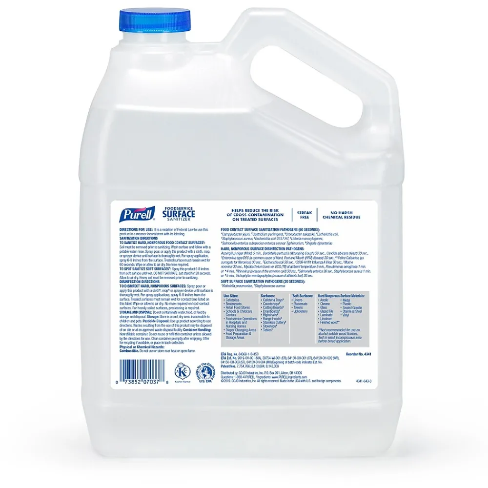 - Case includes: 1 PURELL® Foodservice Surface Sanitizer, 1 Gallon Surface Sanitizer Pour Bottle Refill