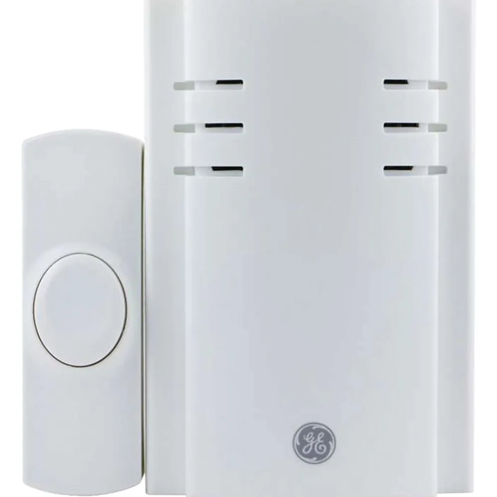 The GE Push-Button Plug-In Door Chime with 2 Melodies provides a do-it-yourself project for a home or office. Program individual sounds for multiple doors using up to four Battery-operated push buttons. Customize your chime volume with four different volume levels. Simply install the Battery in the push button and plug the chime into a wall outlet, and you’re ready to go!