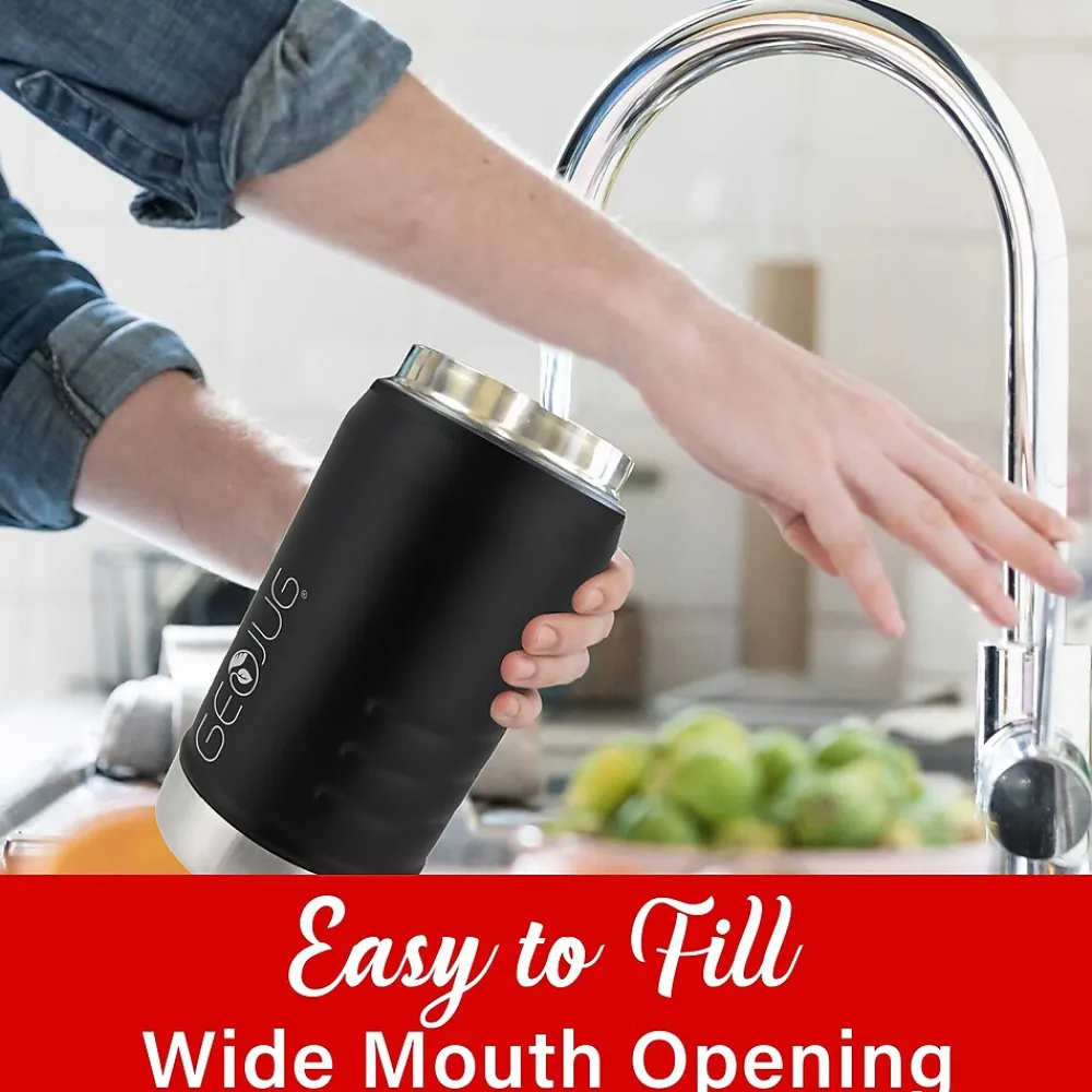 Use the Brentwood® Geojug Stainless Steel Vacuum Insulated Sports Water Jug to keep your favorite beverages hot up to 10 hours and cold up to 24 hours with no condensation. Always enjoy the pure taste of your drink thanks to tasteless and odorless pro grade stainless steel construction. An extra wide mouth is ideal for quick filling and easy cleaning. The thin and durable powder coat finish insures a slip free grip. It includes a uniquely designed spout straw lid with built-in, extra-large carry handle. Conveniently hang the sports jug on a chain link fence using the integrated fence hook on the handle. Stand out with this great insulated water bottle.