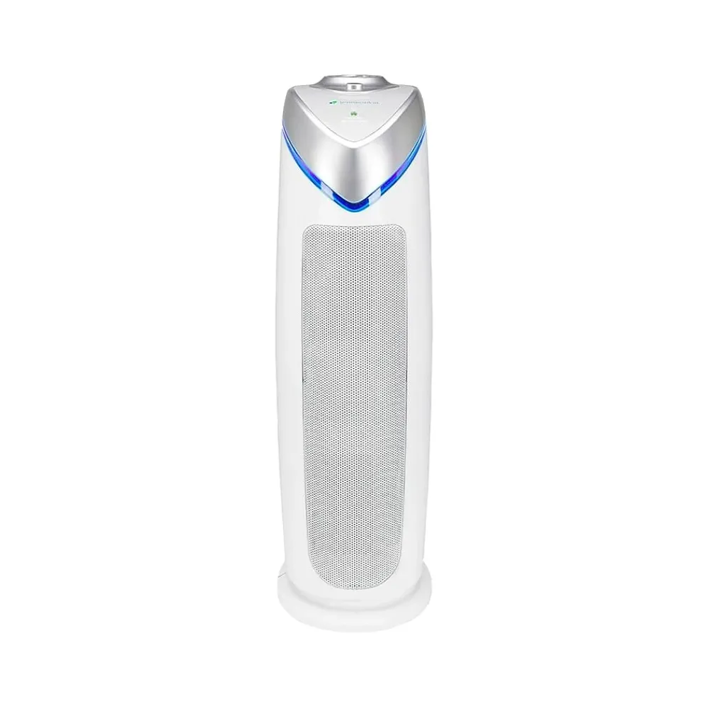 Improve your indoor air quality with the Germ Guardian four-in-one air purifier. Perfect for allergy sufferers, the HEPA filter captures 99.97% of dust and allergens as small as 0.3μ in size. More than just a filter, the UV-C light kills germs, while the charcoal filter captures odors. Standing 22″ tall, it is lightweight and ideal for use in rooms up to 167 sq. ft. Includes a UVC control and a filter change indicator. Choose from three speeds, including a low speed that runs ultraquiet.