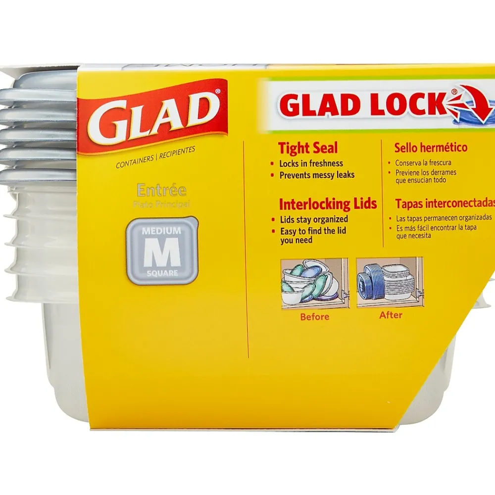 Prevent contamination of stored foods with these plastic containers. The lids seal tightly to prevent spills and protect the contents from the elements, while interlocking stacking enables you to save on storage space. With BPA-free plastic construction, these storage containers keep your food free of contaminants. Microwave-safe, heating food in these Glad Home Collection entree plastic containers is a sound option.