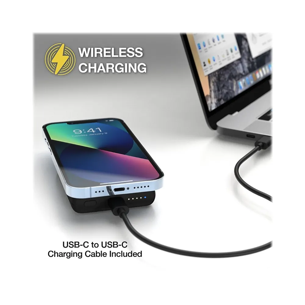 - Portable 5000mAh MagSafe compatible magnetic power bank provides wireless and wired charging options