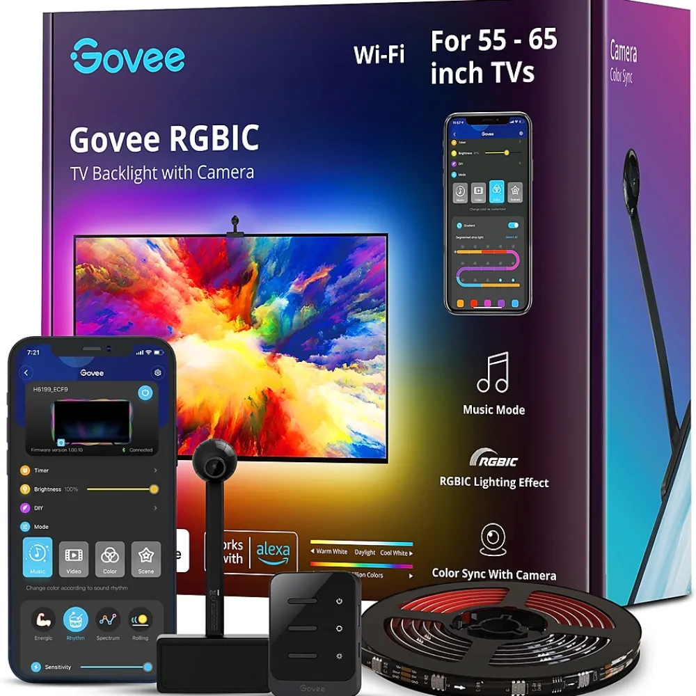 With the DreamView T1 TV Backlight, your gaming world and movie nights will never be the same. Enhance your home entertainment with splashes of vibrant colors dancing around your TV, mimicking what’s on-screen. The DreamView T1 TV backlight includes smart voice control (compatible with Alexa and Google Assistant) and Govee’s Envisual color-match technology. You can also personalize your RGBIC colored lighting using the 12 scene modes, music mode, or you can customize your own design. Fits 55″-65″ TVs.