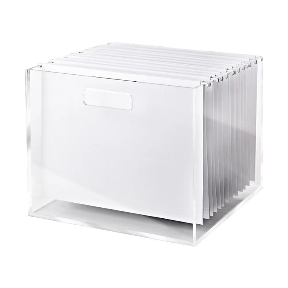 The bright white Russell+Hazel hanging file folder keeps your workspace sleek and inspiring. Each hanging folder accommodates letter-size paper. This set includes 10 folders, each with a metal rod designed to fit the Russell+Hazel acrylic file box and slim acrylic file box. The chic modern design expresses your attention to detail and inspires your best work. This white hanging file folder provides a consistent approach to organizing your documents.