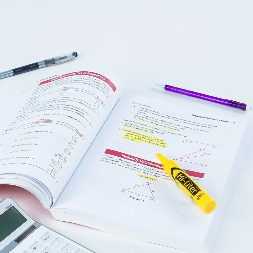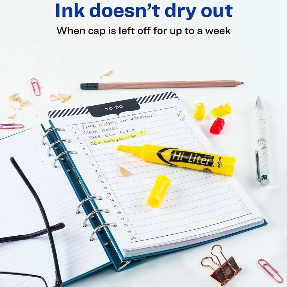 Draw attention to thoughts, ideas, and notes with these desk-style highlighters. Each one has a chisel-tip design that lets you boldly mark, finely underline or circle key points. These Avery Hi-Liter yellow chisel-tip desk-style highlighters use non-toxic ink for safety.