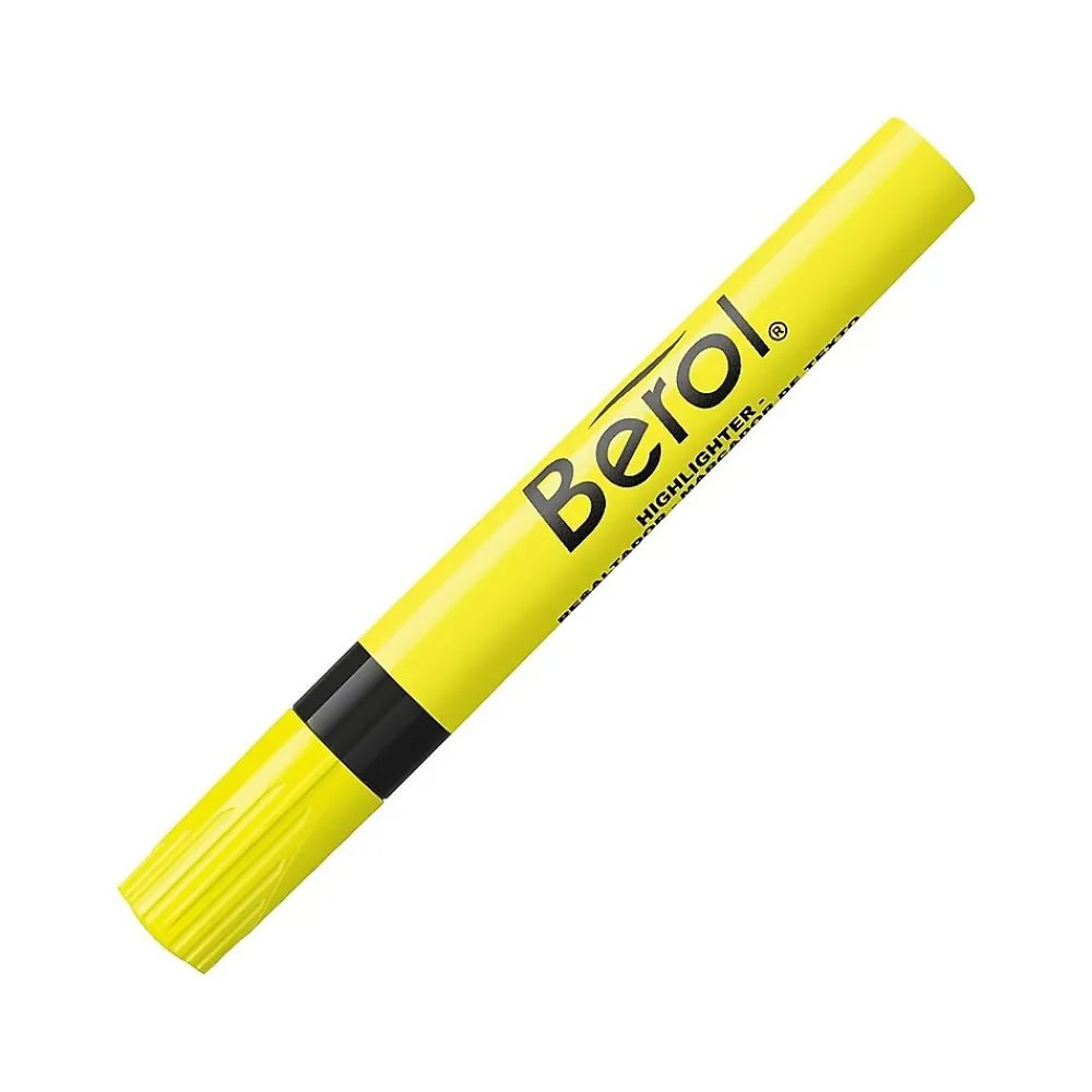 Outline words and phrases on flip charts or posters with this 12-count pack of fluorescent yellow highlighters. The chisel tip produces wide or thin lines, and the jumbo barrel lets you grasp highlighters comfortably and firmly for precise, neat strokes. The bold, bright non-toxic ink of these Berol yellow highlighters has a vibrant color to draw attention and dries quickly to avoid smudges.