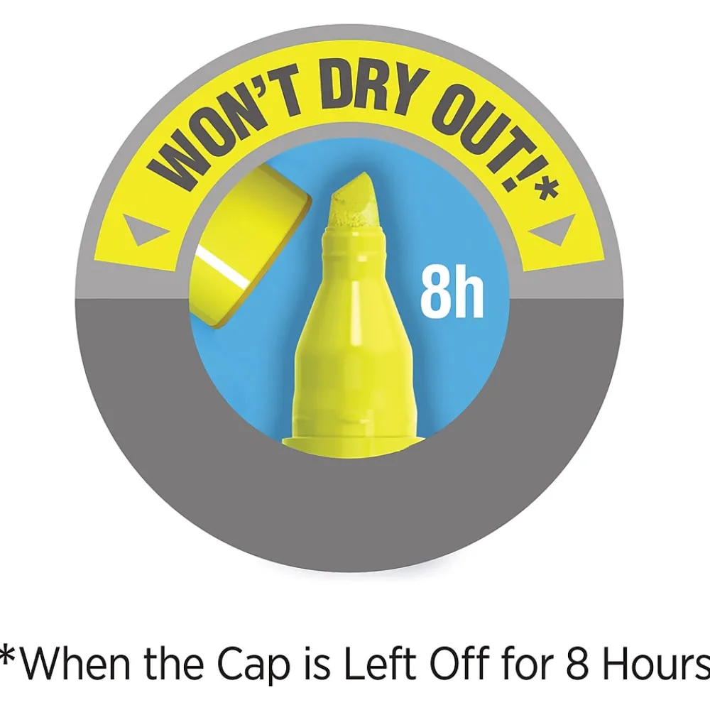 - BIC highlighters can be left uncapped for up to eight hours without drying out