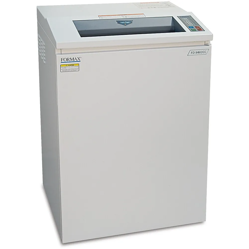 The FD8402SC is a heavy-duty shredder crafted with all-metal construction that guarantees years of reliable use. This sleek and practical strip-cut shredder can handle up to 32 sheets at a remarkable speed of 30 feet per minute, producing shred particles of 1/4” in size. The AC geared motor, equipped with heavy-duty steel gears, ensures high performance and minimal noise while effortlessly shredding though paper, staples, paper clips, and credit cards. The LED control panel, featuring a load indicator, simplifies operation, while the ECO mode conserves energy. With a lifetime guaranteed heavy-duty waste bin and a durable all-metal cabinet with casters, the Formax FD 8402SC combines functionality and longevity.