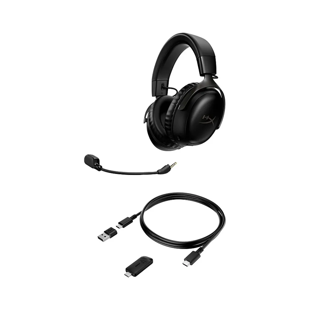 - Box contents: Wireless gaming headset, detachable microphone, wireless dongle, USB Type-C to USB Type-A adapter, USB charge cable (1.64’/0.5m), quick start guide