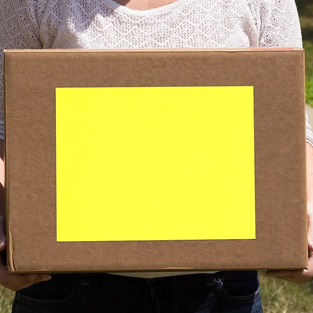 At 8.5 x 11 inches, the JAM Paper Neon Yellow Large Full Page Labels are ideal to label large mails, packages or shipments. Made from 30% recycled paper, they are an eco-friendly alternative to your traditional labels. The labels have an attractive neon yellow profile, which is sure to add a colorful twist to your standard mails and packages. The labels are also printer friendly, making them a time-efficient labeling accessory. The labels also feature an adhesive back panel, which eliminates the need for glues or masking tapes to stick the labels. els are printer and Microsoft Word compatible, allowing you to easily add information or designs on them. With a brightness rating of 50, the labels are designed to ensure that everything you write or print on them is bright and easy to read.