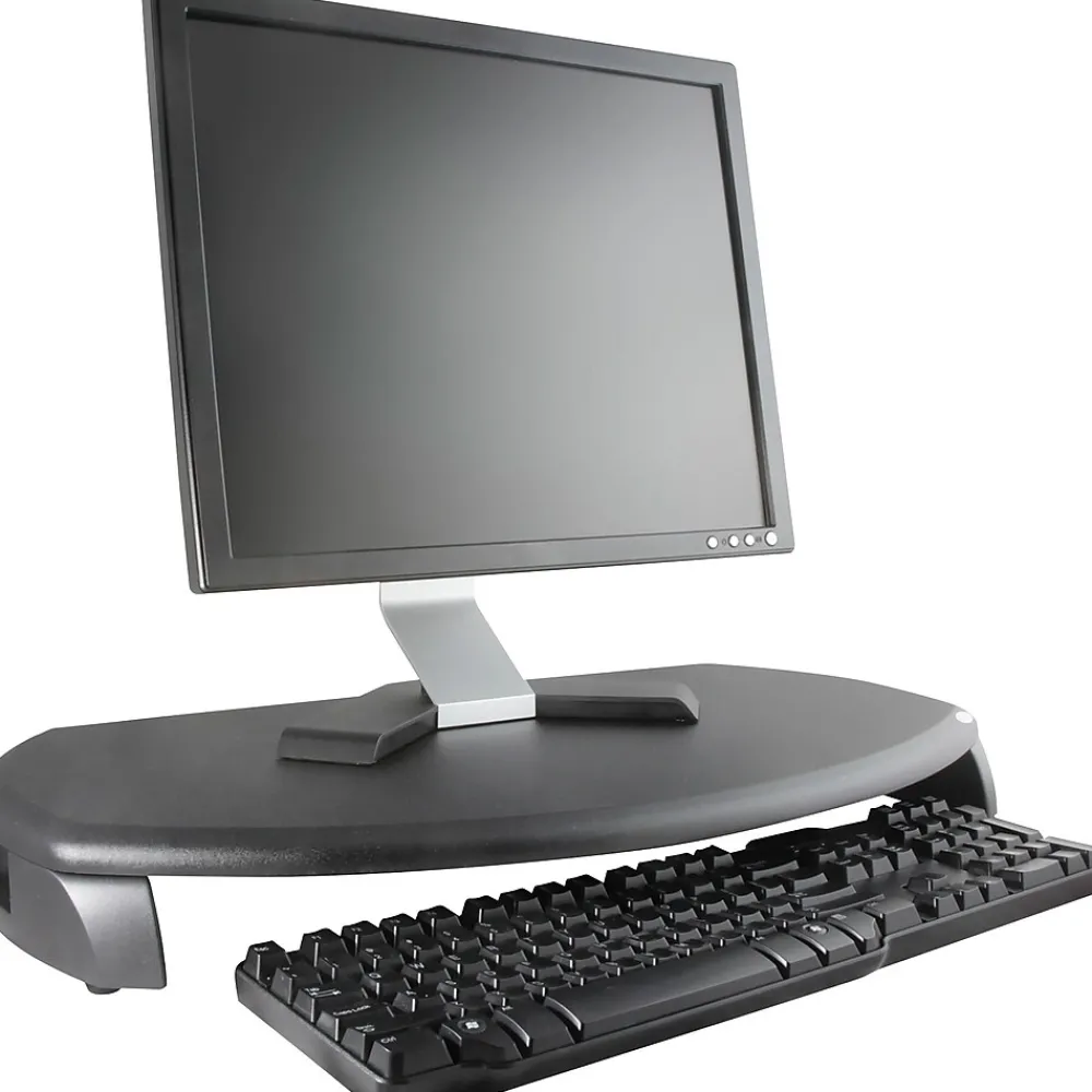 Elevate your workspace with the sleek and functional Monitor Stand with Keyboard Storage in classic black. Designed to raise your monitor to eye level, this stand helps reduce neck and eye strain, promoting a healthier posture throughout your workday. The convenient storage space underneath allows you to tuck away your keyboard, freeing up valuable desk space for a clutter-free environment. Crafted with a sturdy MDF wood top, this stand can support up to 80 lbs., ensuring durability and reliability. Plus, it comes fully assembled, so you can enjoy its benefits right out of the box. Transform your desk into an organized and ergonomic haven with this stylish and practical monitor stand.