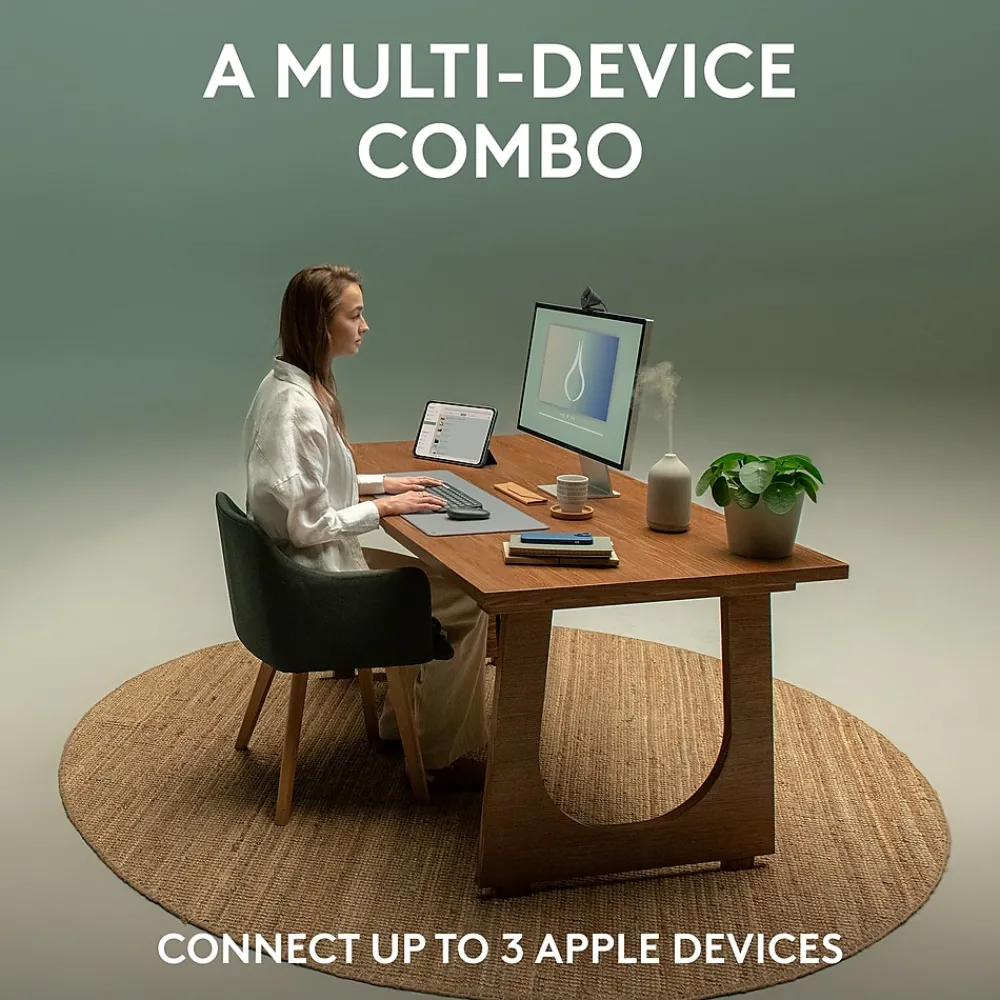 - Slim, multi-device Bluetooth keyboard and mouse with customizable keys and button