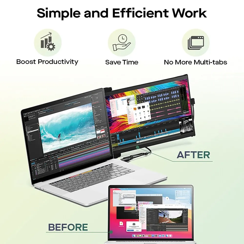 The DUEX Max is MP’s most upgraded, portable dual-screen laptop accessory that makes multitasking effortless. It is ideal for 14-in. and larger laptops. The iconic portable, external monitors complement mobile work, entertainment on the go, and everything in between.