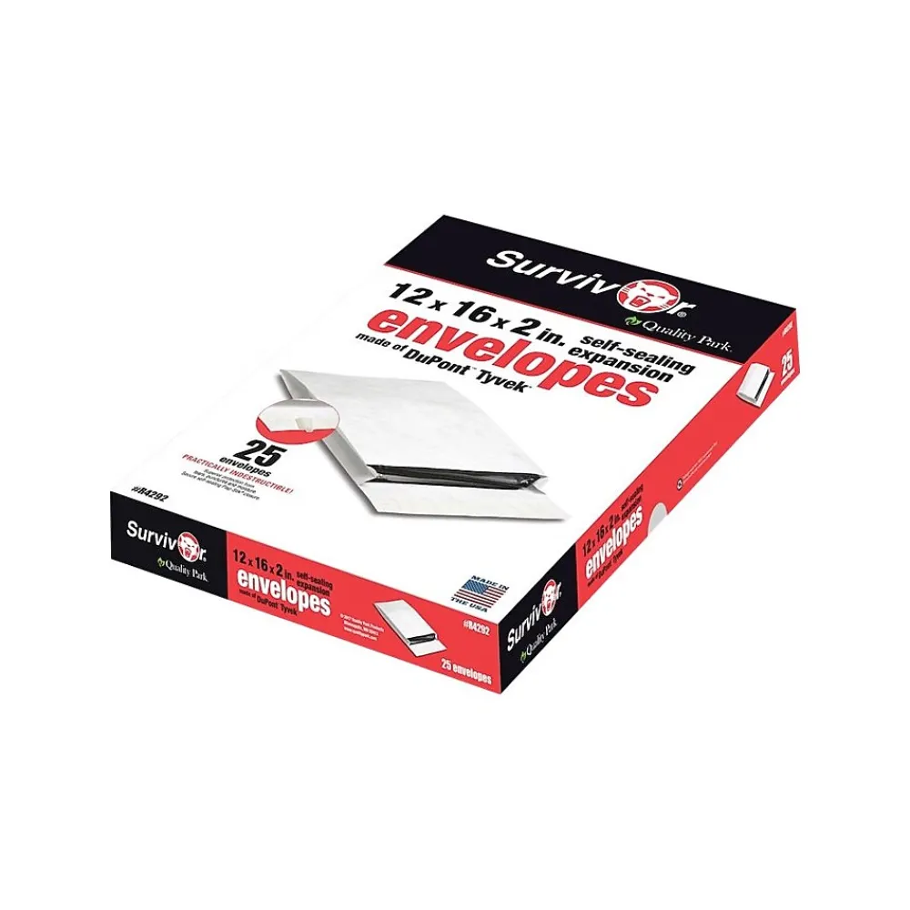 Safely mail photographs or sensitive paperwork in these tough, durable Tyvek mailers that protect contents from punctures, scratches, moisture, or impact-related damage. These Quality Park Survivor self-adhesive Flap-Stik Tyvek mailer envelopes stay closed during transit, and special panels reveal the word “Opened” in bold red letters if forced open.