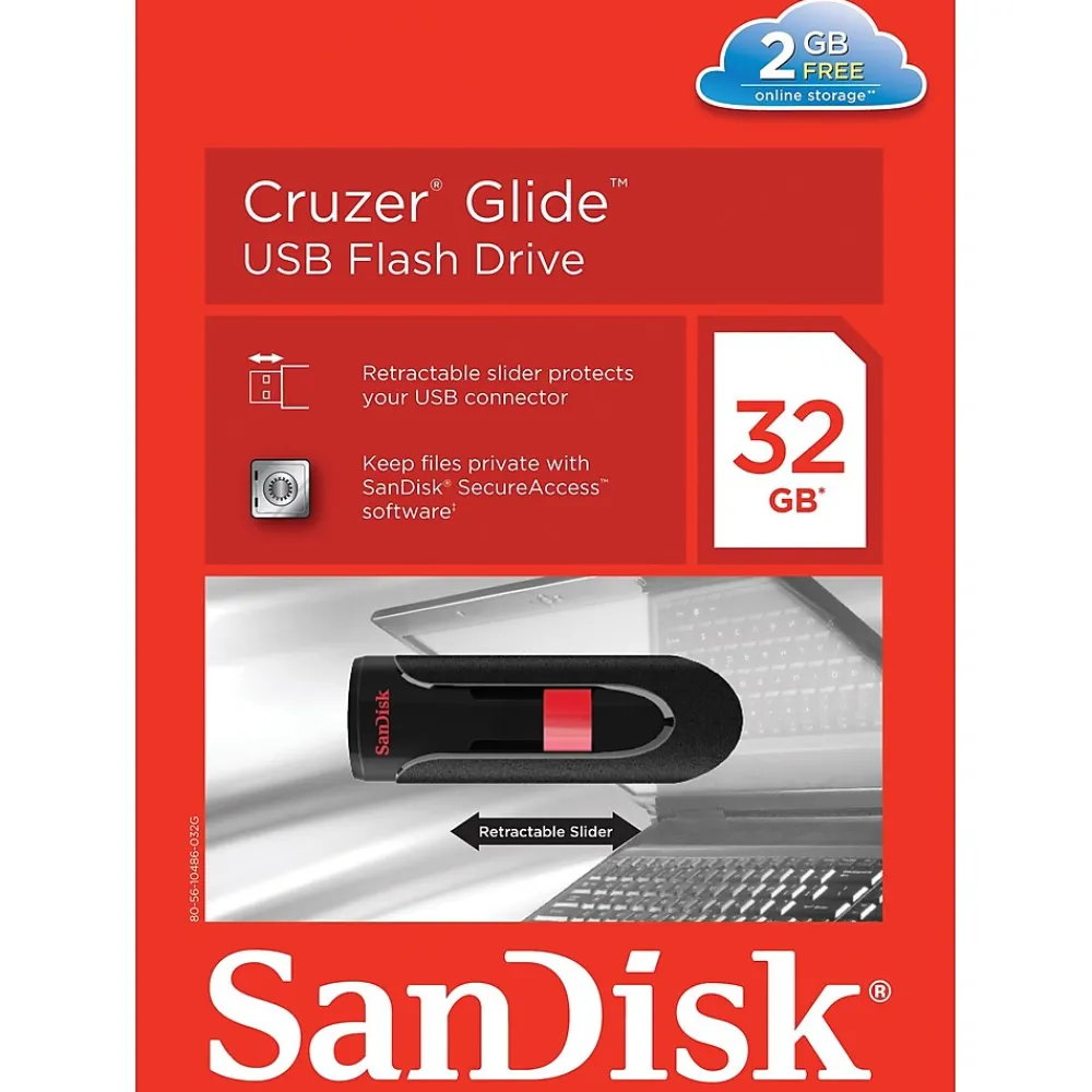 Store, backup, and transfer your important files with the SanDisk SDCZ60-032G-A46 Cruzer Glide 32 GB USB 2.0 Flash Drive. It has a compact, ultra-portable design, so needed files can go with you wherever you need to go. With a huge storage capacity of 32 GB, you have room to store all your photos, music, documents, and even HD videos. The sleek slider design protects the SanDisk Cruzer Glide 32 GB and its contents when you’re on the move. And you can use SanDisk SecureAccess software to keep sensitive files secure.