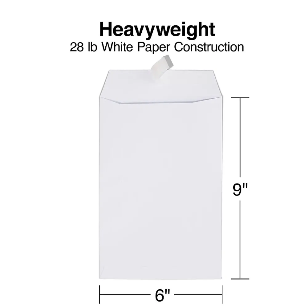 Keep important correspondence safe with these Staples EasyClose white wove catalog envelopes. Each envelope is crafted from 28-pound wove paper and is white, so any text or labels you put on them stand out for easy readability. These Staples EasyClose white wove catalog envelopes are easy to seal shut thanks to the EasyClose design that lets you simply peel and close.
