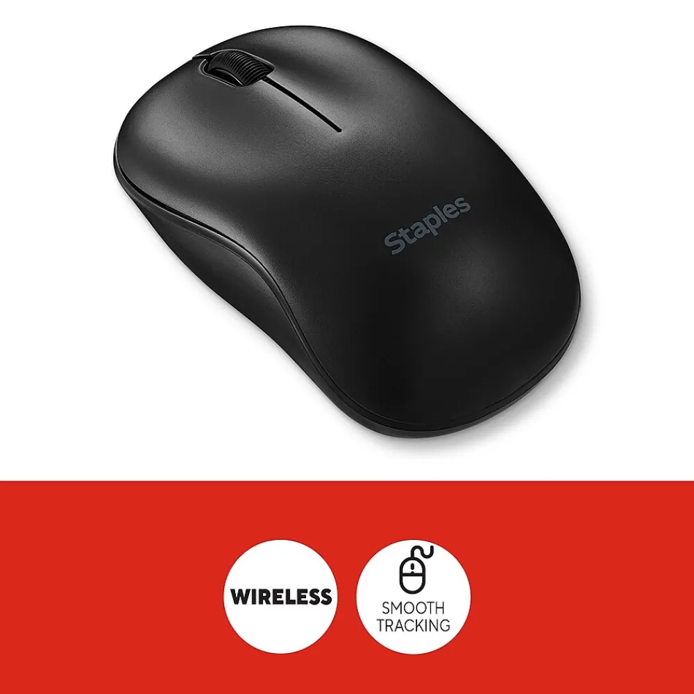 The Staples TECH Wireless Optical Mouse in black will give you flexible and convenient control with 1600 DPI precision. The ambidextrous design makes it perfect for left or right handed users and gives you wireless USB connectivity within a 33 foot range. Two buttons give you easy left and right clicks, and the scroll wheel will help you with precise line-by-line document scrolling. You’ll know when to change the included battery with the low battery indicator. The mouse is portable with the USB dongle storage. The plug-and-play is compatible with Windows® 10, 11 or later, macOS 10.5 or later, and ChromeOS™, including Chromebook support.