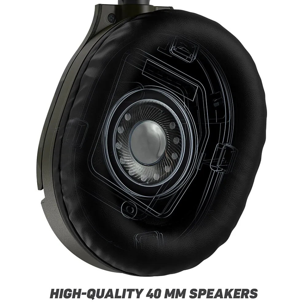 Built for your next victory, your latest achievement and much more is the Turtle Beach® Recon 70 Green Camo multiplatform gaming headset. Featuring Turtle Beach’s latest lightweight and comfortable headset design for hours of play, with high-quality 40mm speakers and over-ear premium synthetic leather cushions that let you hear every crisp high and thundering low while blocking noise. Plus, for even more immersive audio, the Recon 70 supports spatial sound technologies like Windows Sonic, Dolby Atmos, DTS Headphone: X* and Sony 3D Audio for PS5™. Turtle Beach’s renowned high-sensitivity mic to ensure you are heard clearly and easily flips up to mute. Finally, the versatile 3.5mm connection makes it perfect for swapping between PlayStation® and Xbox controllers, Nintendo Switch™, and PCs & mobile devices with 3.5mm connection. (127) *Dolby Atmos and DTS:X: may require additional purchases, app downloads, and supported hardware.