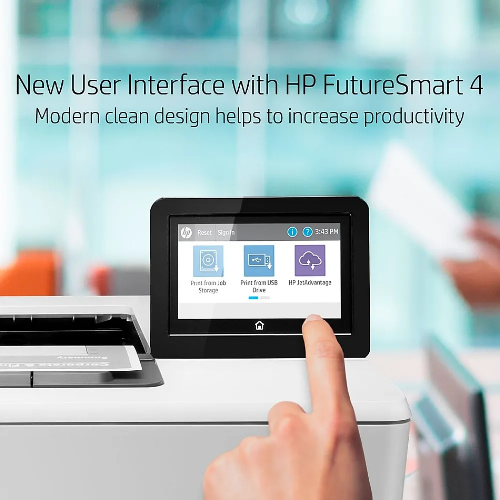 Keep up with the demands of growing business with a printer you can rely on—the HP LaserJet Enterprise M507x is designed to handle business solutions securely and efficiently. This monochrome laser printer is built with the world’s most secure printing, and helps save up to 29% energy over prior products with HP JetIntelligence toner. Centralize control of your printing environment with HP Web JetAdmin, and gain insights into print costs, behaviors, and utilization. Stay productive with a 4.3″ color touchscreen control panel, a 1200-sheet total input tray capacity, automatic 2-sided printing, print speeds of up to 45 pages per minute, and solutions that keep business moving.