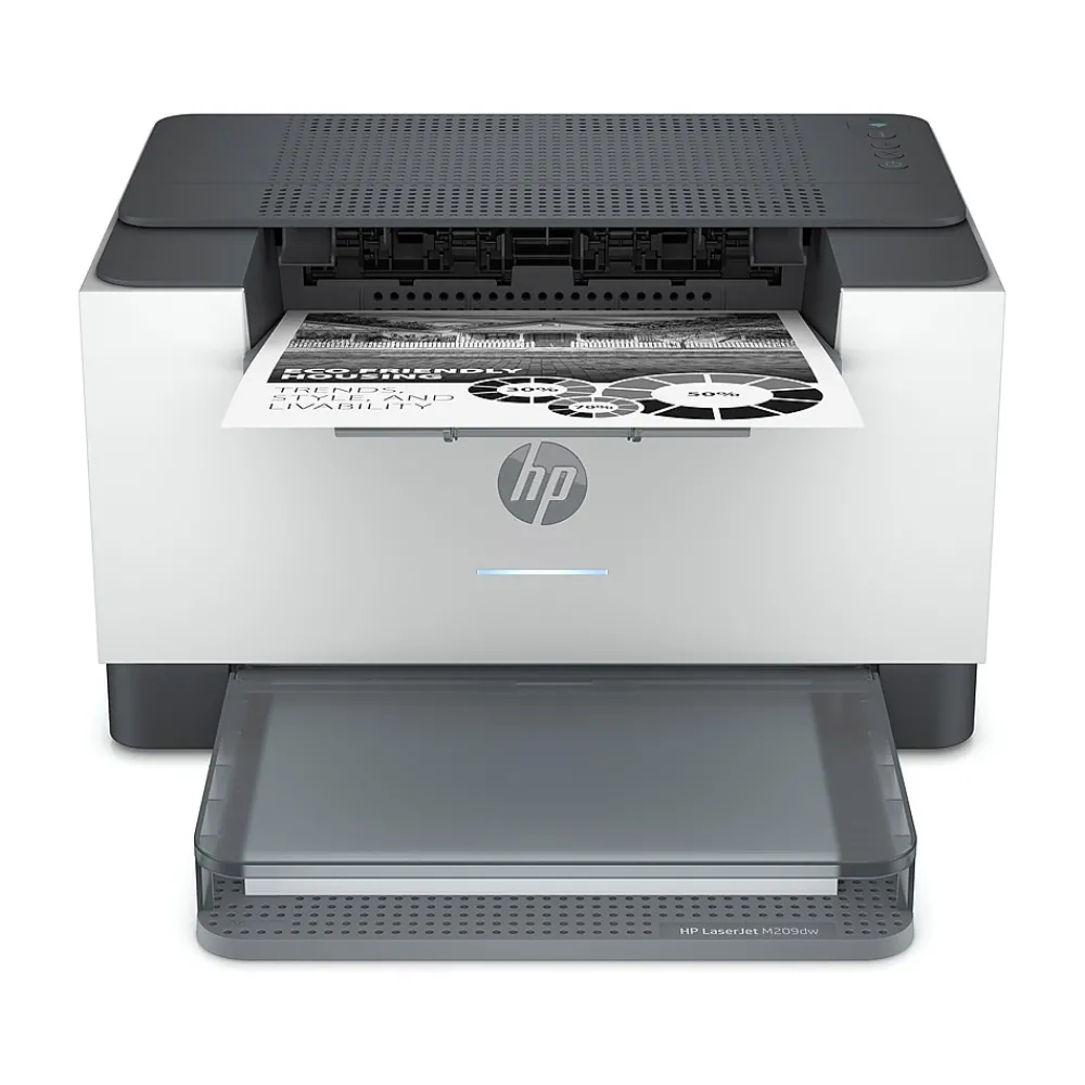 The HP LaserJet M209dw offers fastest in-class two-sided laser printing, plus smart setup and reliable connectivity. Get peace of mind from more reliable connections with dual-band Wi-Fi with self-reset and strong security.
