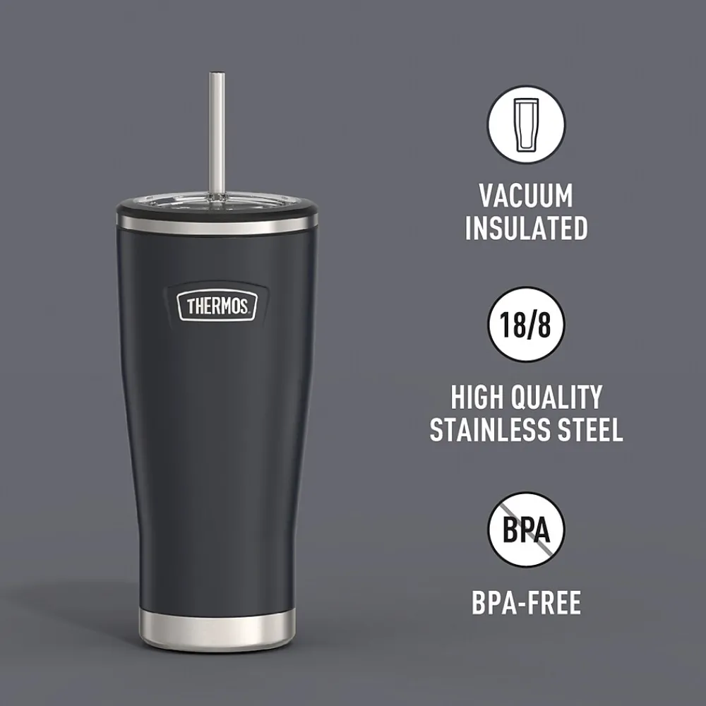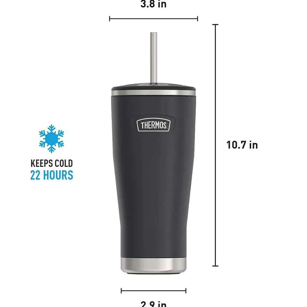 Starts cold. Stays cold. The Icon™ 24-Oz. Stainless Steel Cold Tumbler with Straw from Thermos® helps you stay hydrated to take on the day. It comes equipped with a stainless steel straw to keep up with whatever your day has in store. From the nonslip Griptec™ base to superior vacuum insulation and durable True-Coat™ finishes, the Icon™ Series by Thermos® is an ideal tumbler for everyday use. It’s dishwasher safe, but don’t use with hot liquids.