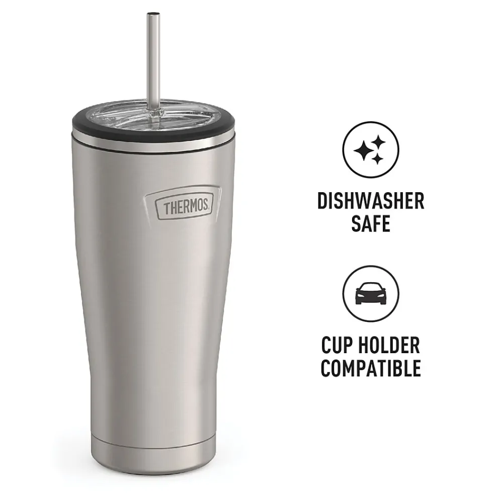 Starts cold. Stays cold. The Icon™ 24-Oz. Stainless Steel Cold Tumbler with Straw from Thermos® helps you stay hydrated to take on the day. It comes equipped with a stainless steel straw to keep up with whatever your day has in store. From the nonslip Griptec™ base to superior vacuum insulation and durable True-Coat™ finishes, the Icon™ Series by Thermos® is an ideal tumbler for everyday use. It’s dishwasher safe, but don’t use with hot liquids.