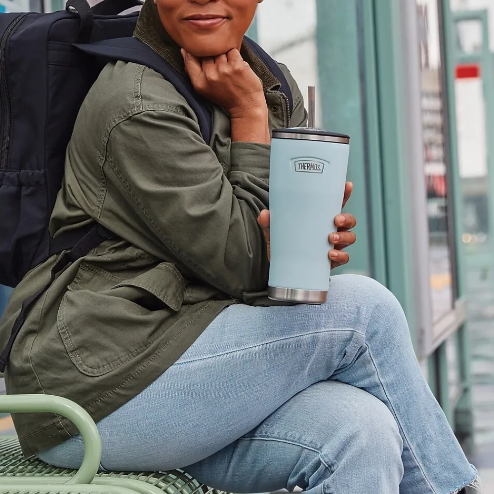 Starts cold. Stays cold. The Icon™ 24-Oz. Stainless Steel Cold Tumbler with Straw from Thermos® helps you stay hydrated to take on the day. It comes equipped with a stainless steel straw to keep up with whatever your day has in store. From the nonslip Griptec™ base to superior vacuum insulation and durable True-Coat™ finishes, the Icon™ Series by Thermos® is an ideal tumbler for everyday use. It’s dishwasher safe, but don’t use with hot liquids.