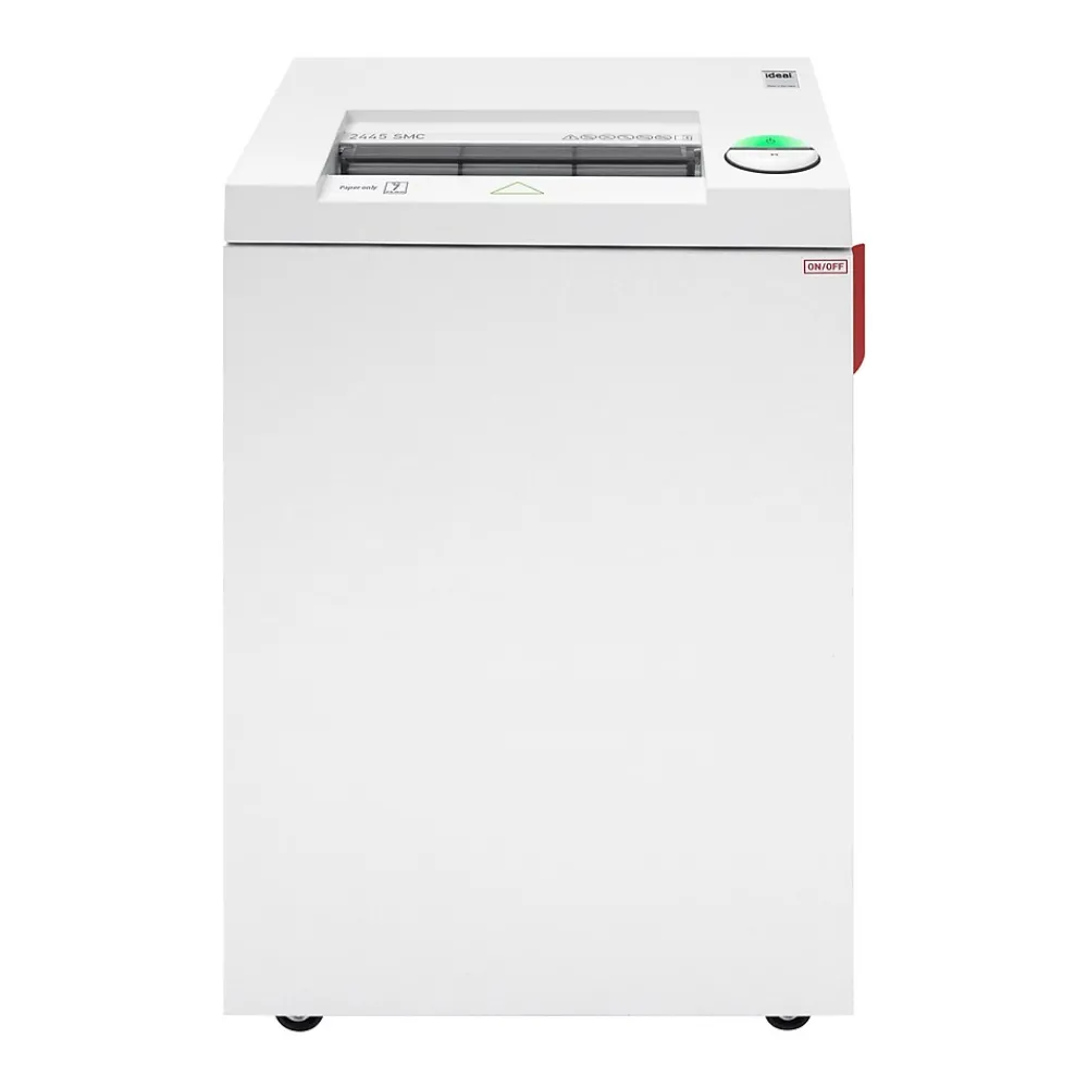The ideal 2445 super micro-cut paper shredder is a Deskside shredder designed for 2-3 users and Shreds 5-7 sheets of paper at a time, with up to107 sheets per minute