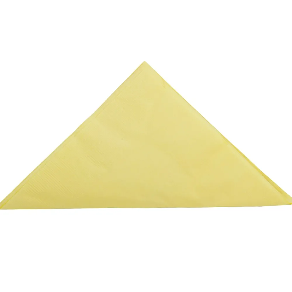 Pastel Yellow Medium Lunch Napkins measure 6.5 inches on each side, allowing for a flawlessly square shape. This pack contains an even total of 50 napkins. Each one features bold, bright and vibrant pastel yellow color that makes them great for birthdays, bridal showers, summer parties, family reunions, and more! The size and shape of these napkins makes them great for placing under bowls or for handing out with the desert plates. These napkins are made out of smooth, durable, and absorbent 2-ply paper. If your planning an upcoming event at which yellow will fit the color scheme, complete your table settings with these square napkins!