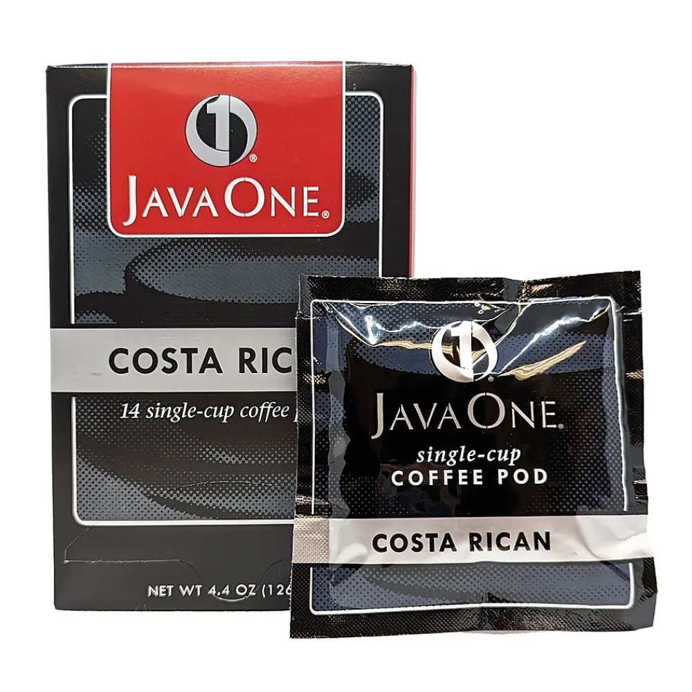 Java OneĀ® Single cup estate Costa Rican flavor ground Coffee is filled in 0.3 oz pod and is regular caffeinated to prevent health risk. Coffee delivers high-quality smooth, rich taste and brews 8 – 10 oz cup, sold as 84 pods per case.