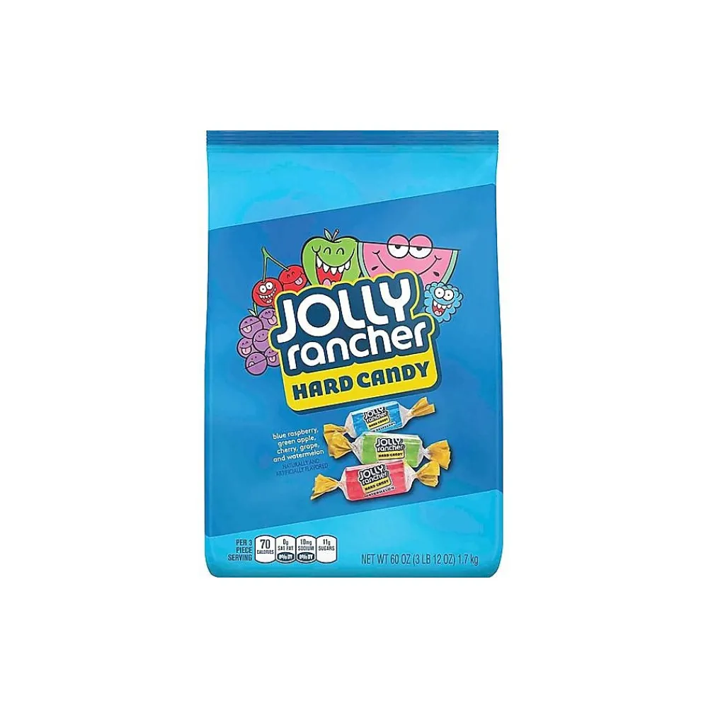 Draw in customers at your next trade show or event with the fruit flavors in this assortment bag of hard candies. Delivering a fat-free option to indulge in, these bold fruit-flavored sweets offer a health-conscious candy option. Whether you are hosting a corporate event, an office party or an open house, this 5-pound bag of Jolly Rancher hard candies provide plenty of flavorful treats to welcome guests.