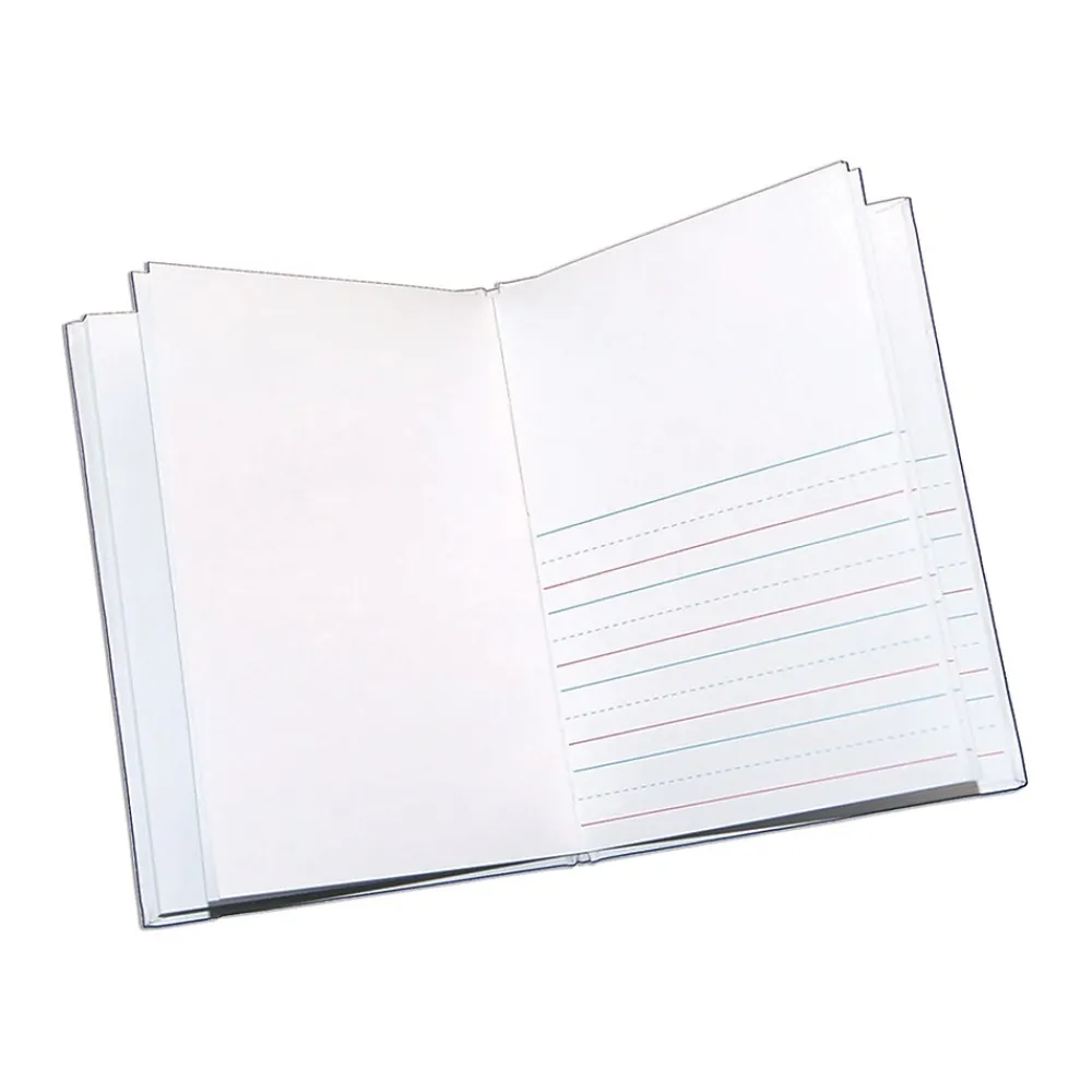Children’s Factory Ashley® Journal in white color measures 6″ x 8″ and is ideal for PreK children. Hardcover journal contains alternate pages of blank and blue/red primary lines with 3/4″ spacing.