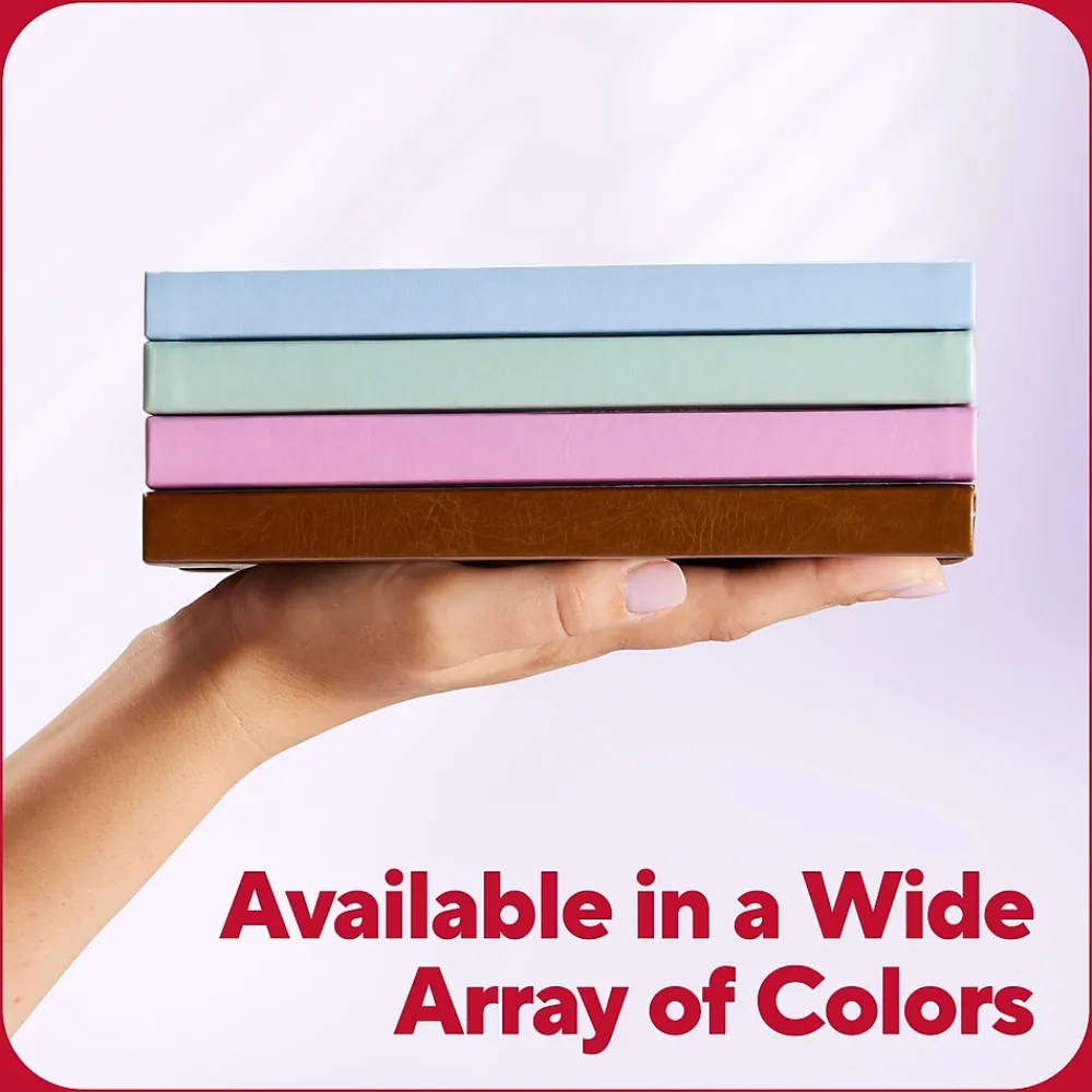 This TRU RED™ light blue flexible journal is comfortably sized for note taking on the go. The 256-page capacity fits the biggest ideas and plenty of notes, while the narrow-ruled layout lets you write more per page. With two page markers this TRU RED™ journal make it easy to find important notes or where you last left off.