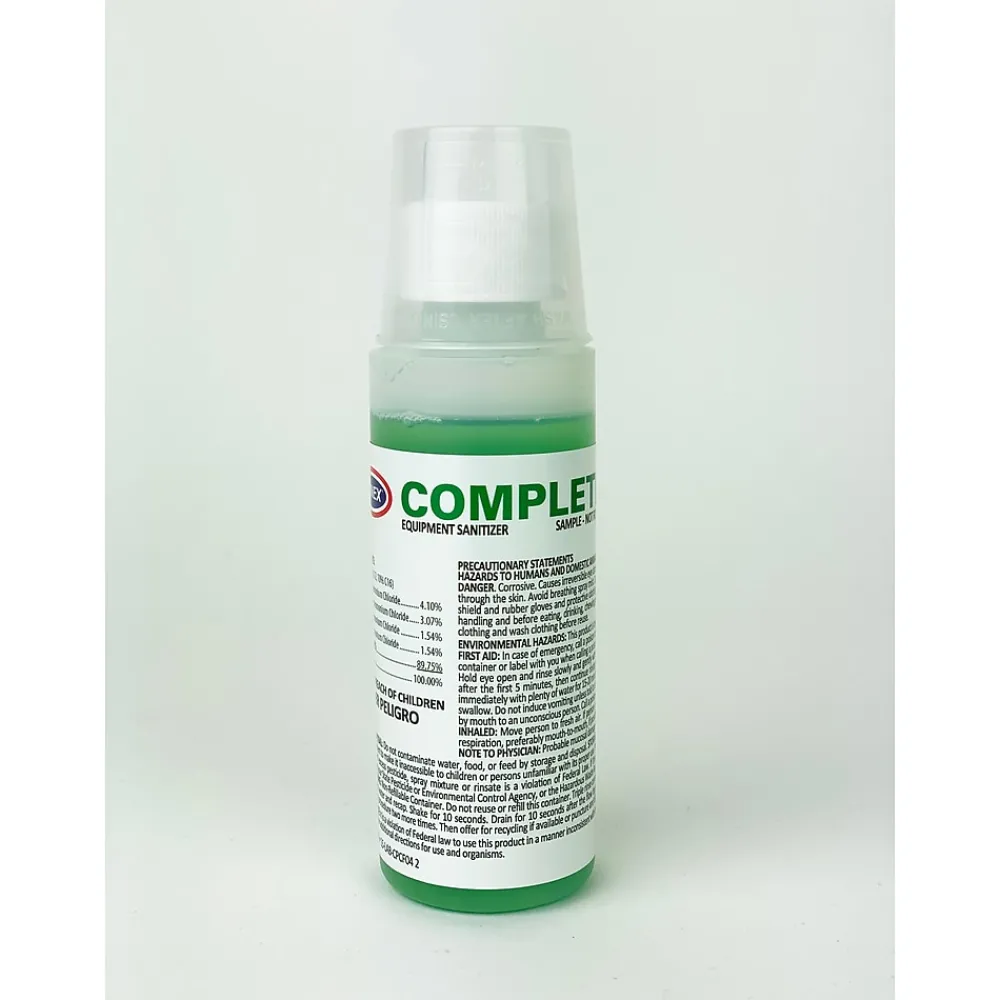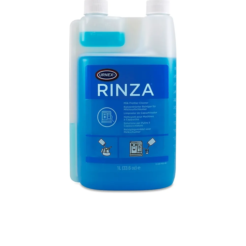 Kit includes cleaning/sanitizing instruction sheet. Kit includes: 1 – 4 oz. Bottle Complete Café, 3 – 32 oz. Bottles Rinza, 15 Cleaning Cups and 1 Empty Spray Bottle.