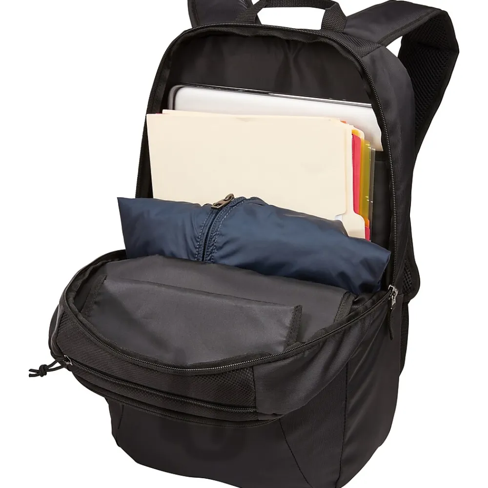 - Large capacity main compartment easily stores folders, notebooks or a light jacket