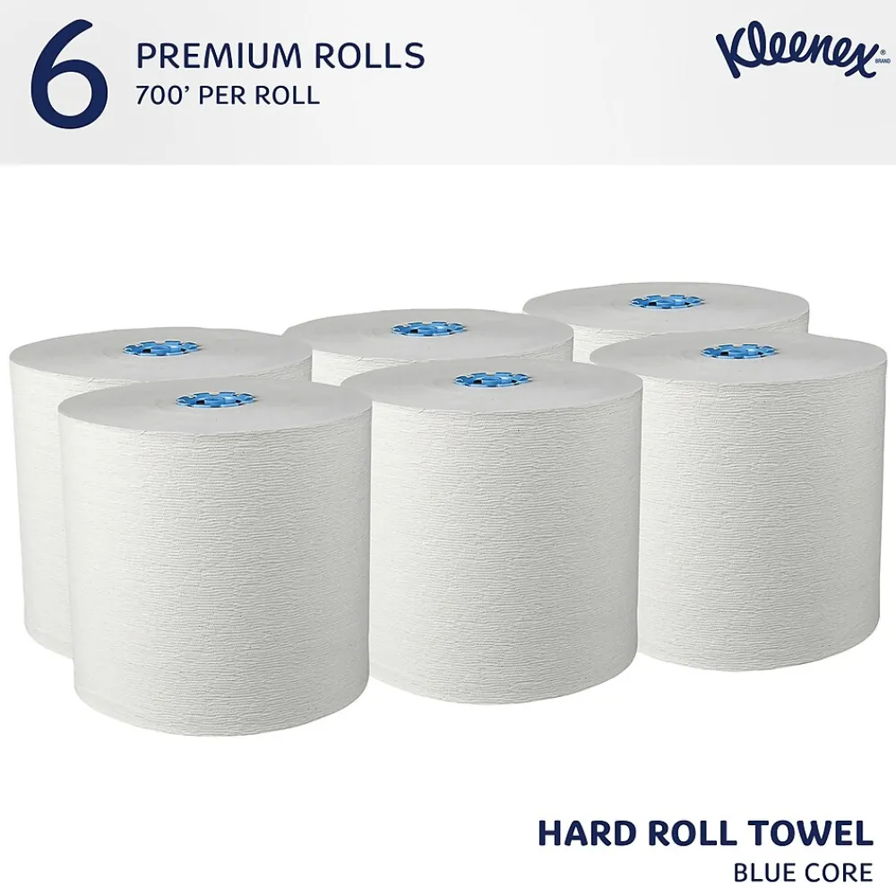 Kleenex® Hard Roll Paper Towels (25637) with Premium Absorbency Pockets, White, for Dispenser (Blue-Core), 700 ft./Roll, 6 Rolls/Case, 4,200’/Case