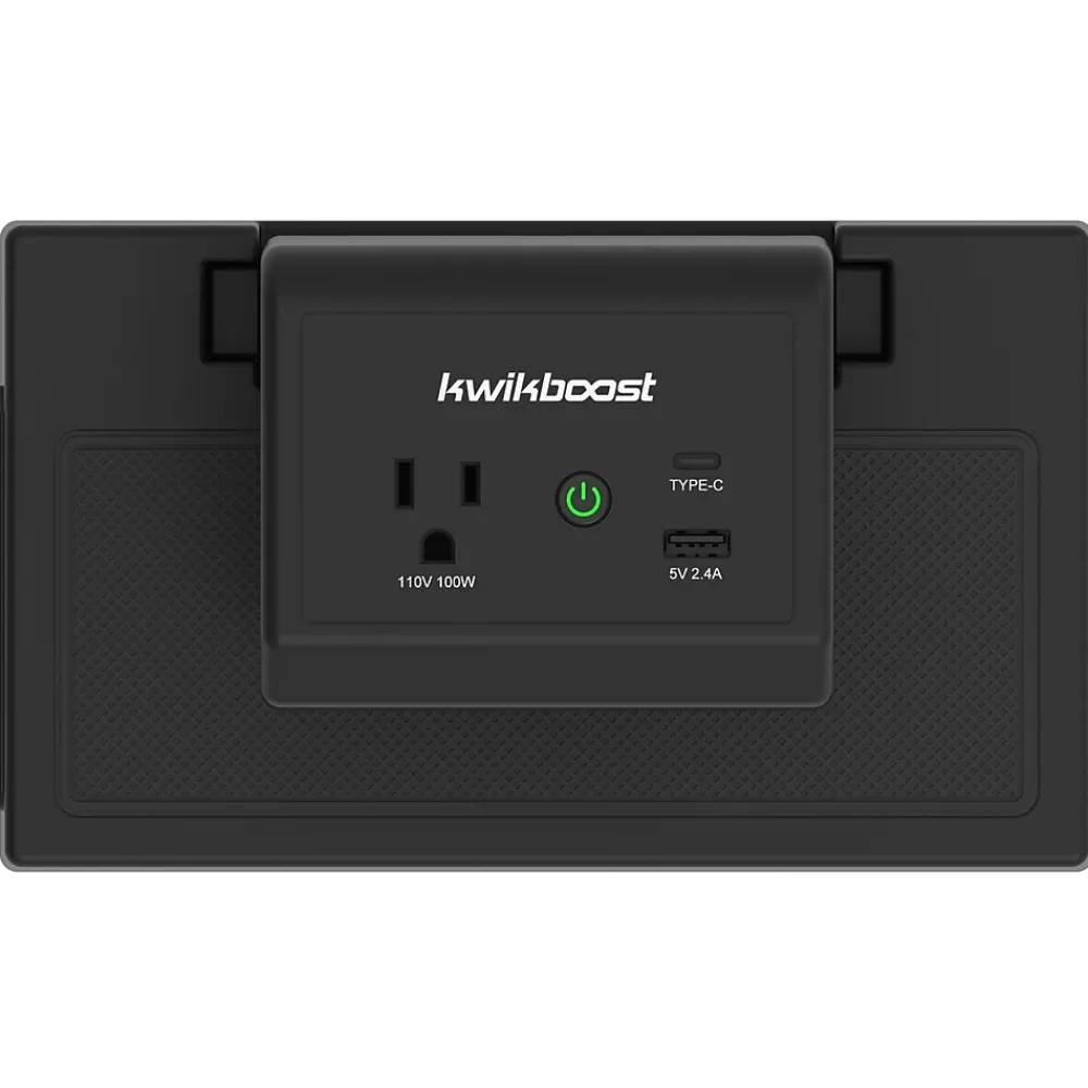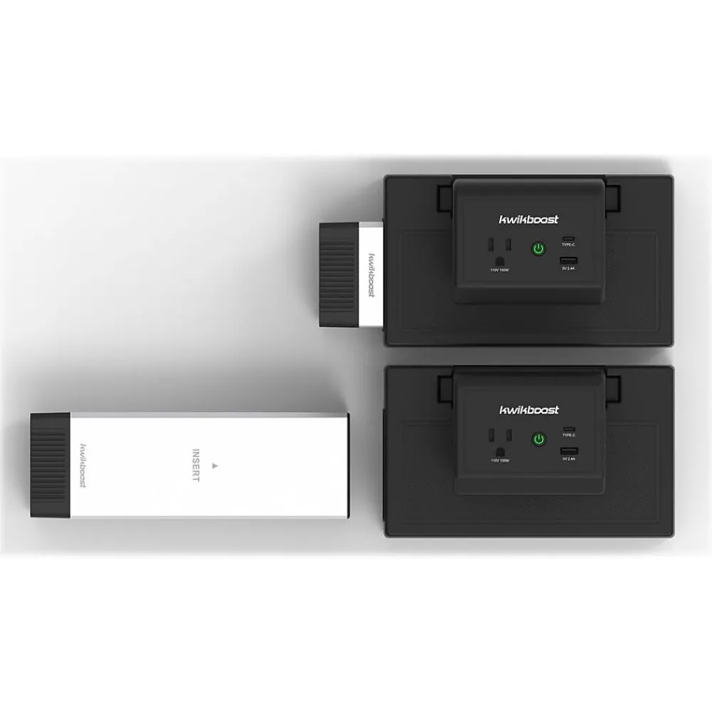 Enjoy convenient cordless charging of mobile devices. The Luxor KwikBoost EdgePower desktop charging station system is a total solution for laptops and mobile devices in workspace and classroom environments. KwikBoost EdgePower eliminates extension cords by putting power right where you need it. The clamp-on desktop charging unit features an innovative design that easily attaches to most tables and desktops. Once connected, the station offers a standard AC outlet, a USB Type-A charging port, and a USB Type-C PD charging port. When loaded with a freshly recharged EdgePower rechargeable battery, the charging station has enough power to charge a typical laptop up to two times, a standard Chromebook or tablet up to four times, and an average smartphone up to 14 times. The charging unit can also charge a laptop and two mobile devices simultaneously.